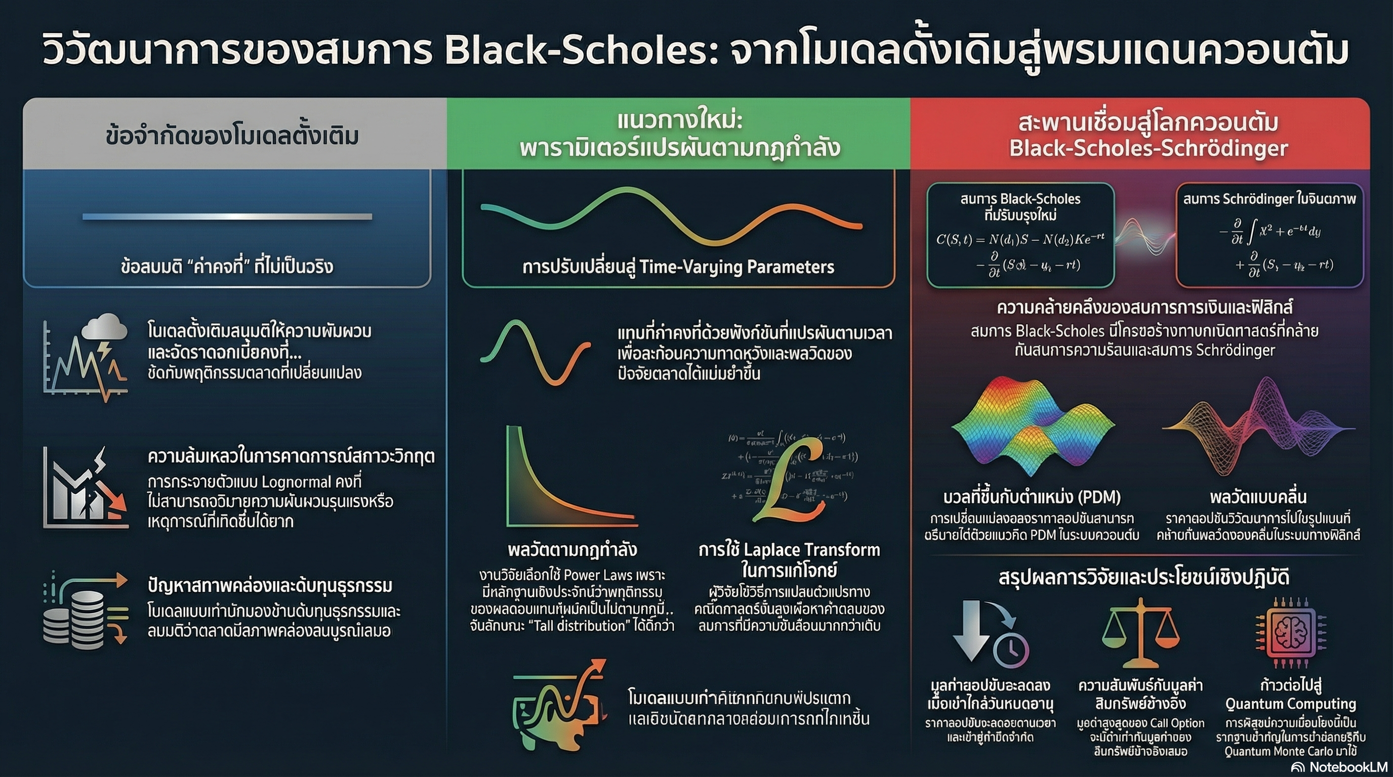 The traditional Black–Scholes–Merton model, while foundational to modern quantitative finance, is increasingly viewed as inadequate due to its reliance on static assumptions—specifically constant volatility, risk-free interest rates, and dividend yields. This document synthesizes research proposing a generalized Black–Scholes equation (BSE) that incorporates time-varying and state-dependent parameters governed by power-law dynamics.By utilizing variable transformations and Laplace transforms, researchers have successfully mapped the generalized BSE to a generalized Schrödinger equation from quantum mechanics. A critical finding of this synthesis is the emergence of “position-dependent mass” (PDM) within the financial context, where market variables are modeled via wave-like dynamics. This interdisciplinary approach provides a more robust framework for pricing derivatives, explaining market irregularities, and aligning theoretical models with empirical data such as high-frequency stock returns and “fat-tail” distributions.