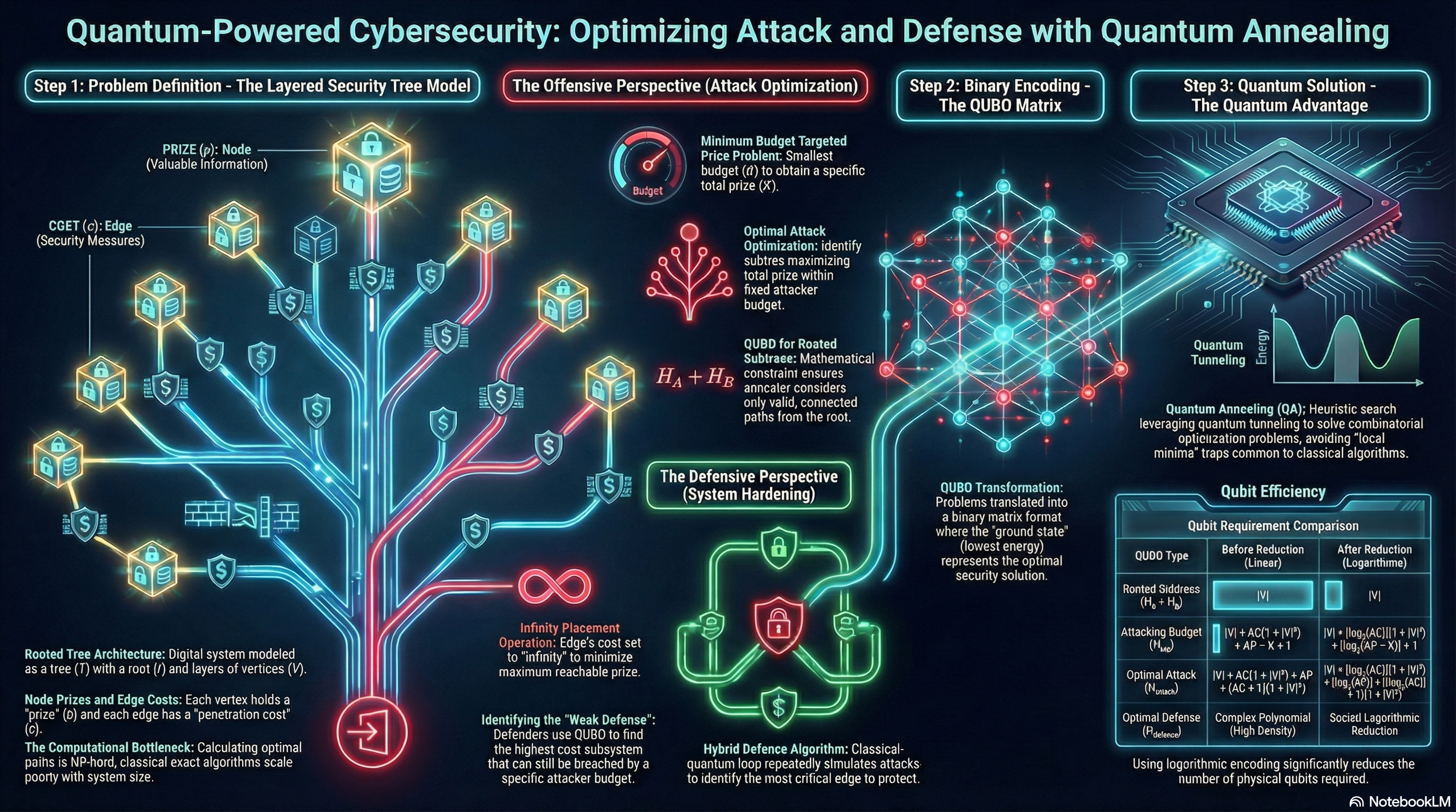 ●       Real-Life Application:  Trees represent actual layered security networks. Experts can assign prizes (asset values) and penetration costs (measure effectiveness) to run these models on quantum annealers to derive optimal strategies.